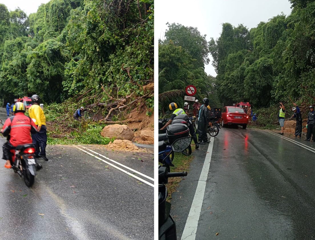 垄尾路山坡一块大石滚落路中,并连带树木倒下,所幸未造成任何人命伤亡。