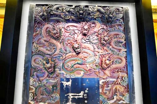 在展品区,也展出了许多珍贵文物如第一块“北海斗母宫”牌匾、曾安装在龙船的牌楼模型、内殿九龙木雕,甚至还有曾因被窃贼偷走登上新闻,后失而复得的破损香炉。