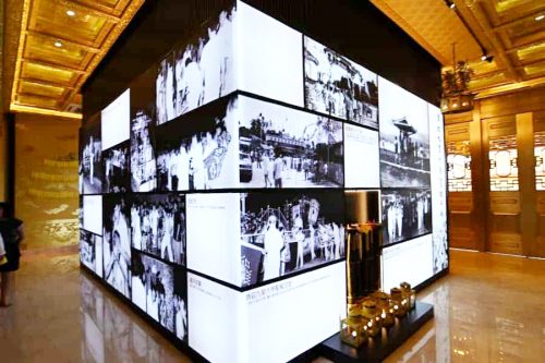 走入“斗母九皇信仰文化展馆”,映入眼帘的是莲花池装置;而从左侧走入“筚路蓝缕”四个大字,与如今的金碧辉煌形成强烈对比。
