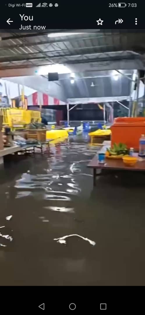 周四(22日)午后一场豪雨来得猝不及防,加上河水暴涨及沟渠无法及时排水,双溪大年大巴窑的金吒坛斗母宫顿成泽国!原本庄严的殿堂,积水瞬间上涨,水位深至膝盖。