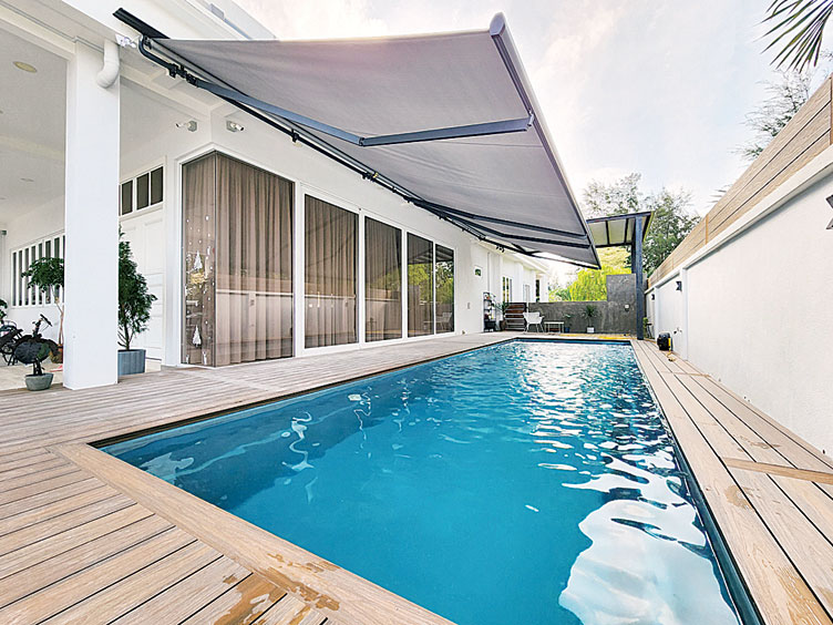 Retractable Awning伸缩遮阳篷,展开时可有效遮阳,收起后则回归蓝天白云,灵活又实用的户外遮阳解决方案 !