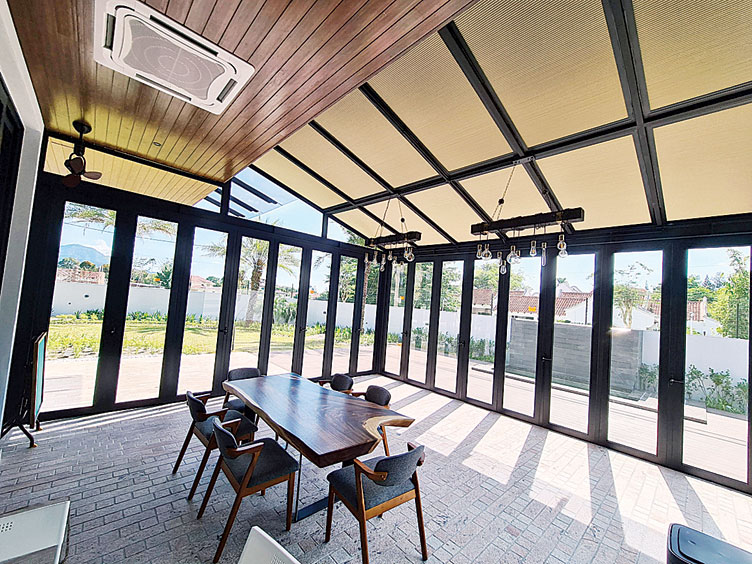 Zipguide户外帘- 如隐形玻璃把室外变成室内舒适空间!集遮光、挡雨、隔热,防尘,防蚊虫能于一身,是极致实用最有效果户外窗帘代表。