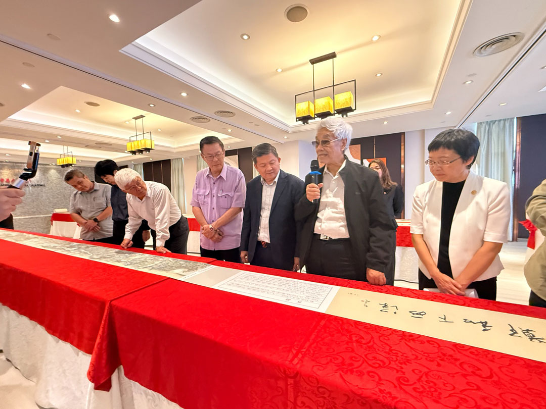 书画艺术家锺开天则在现场讲解《郑和下西洋》中国画长卷的内容及其创作的心路历程。