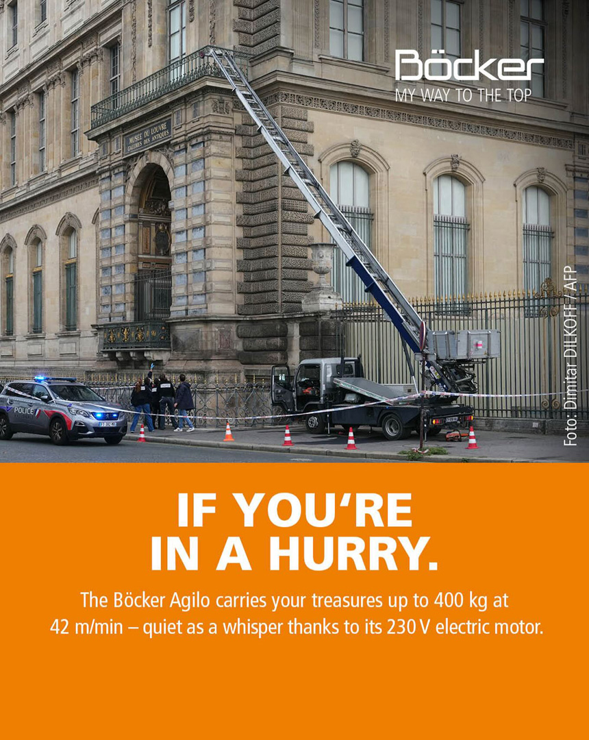 法国巴黎罗浮宫19日遭歹徒窃走8件珍宝,估计财产损失达到8800万欧元(4.31亿令吉)。不过,窃贼所使用的升降梯厂商博克趁机幽默打广告,在网络中取得不少关注。
