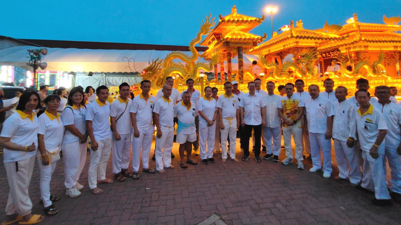 北海斗母宫举办九皇大帝圣驾圣谕游境出巡,前来参与的嘉宾和理事一起合影。