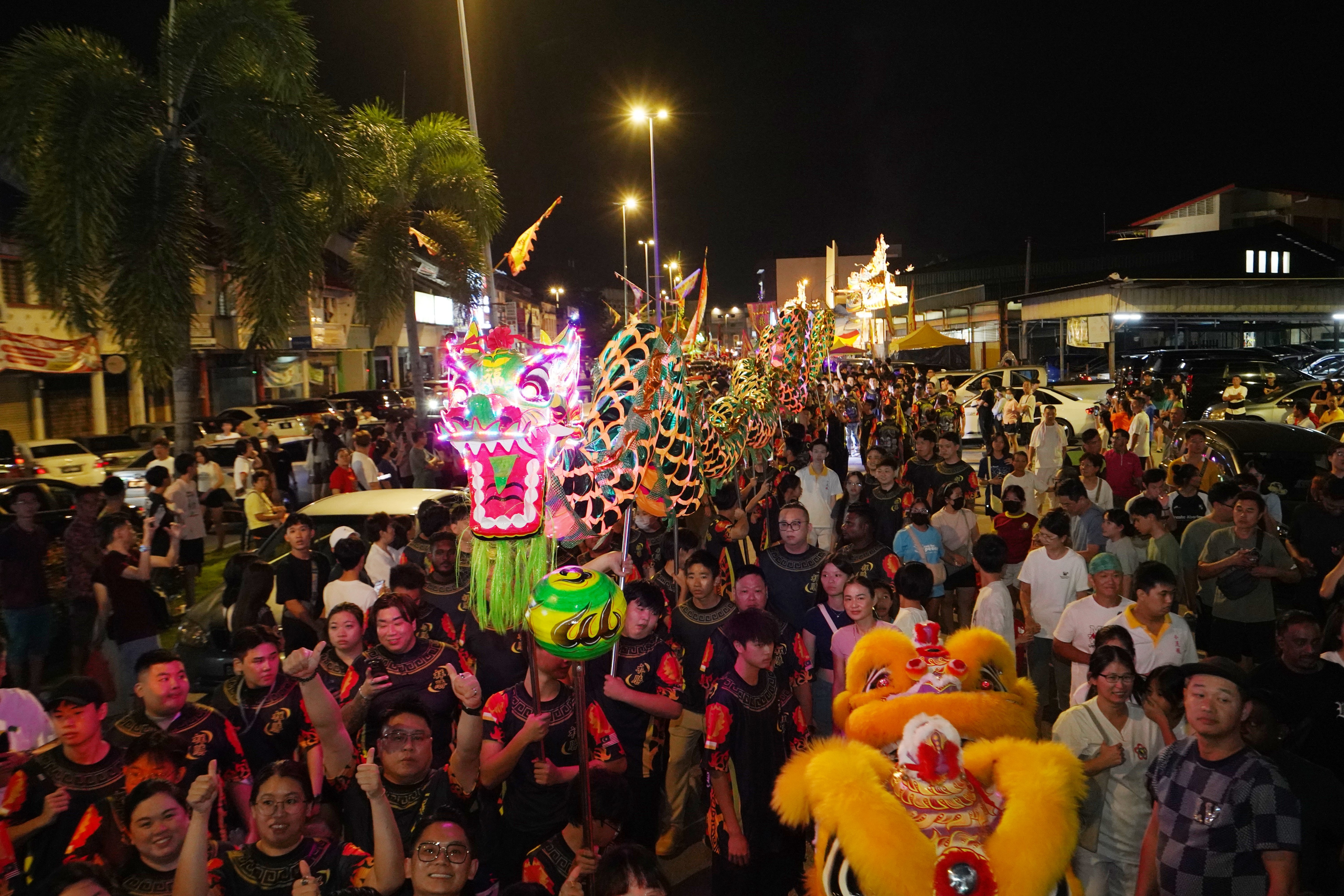 另一方面,配合九皇大帝庆典,怡保斗母宫在周六晚依循传统,于晚上11时前往近打河畔举行庄严的“接圣驾”仪式,场面隆重庄严,香火鼎盛,今年的接驾队伍汇聚本地超过20多个龙狮团及民间社团参与,鼓声齐鸣、队伍绵延,吸引大批善信和公众驻足观礼,气氛热烈。