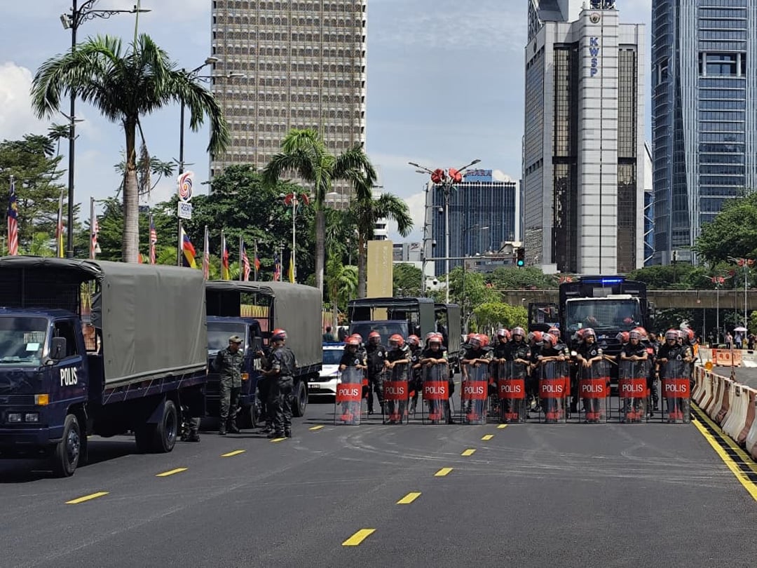 尽管示威群众人数不多,也已远在会场之外,但警方仍不敢怠慢,吉隆坡总警长拿督法迪尔和金马警区主任苏里兹米阿芬迪助理总监更亲自坐镇,还出动联邦后备队驻守,避免示威者临时起意发起游行。