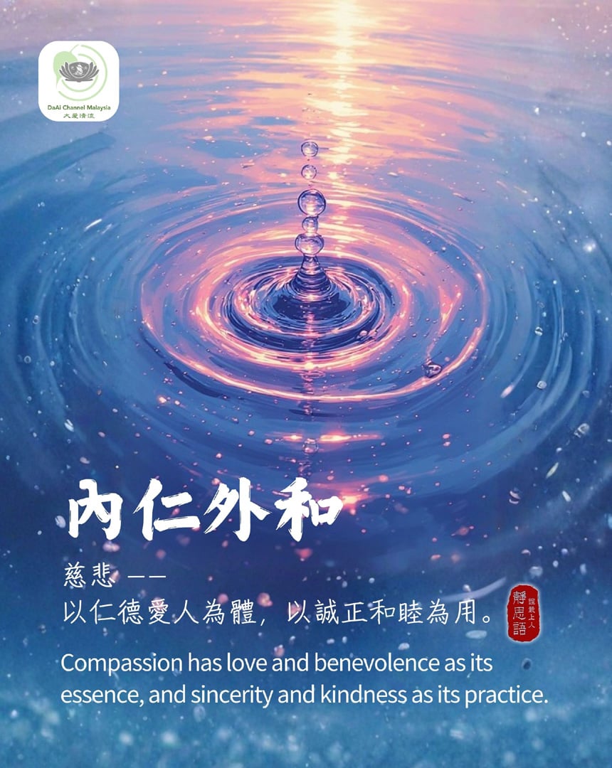 内仁外和 ~ 慈悲 – – 以仁德爱人为体,以诚正和睦为用。