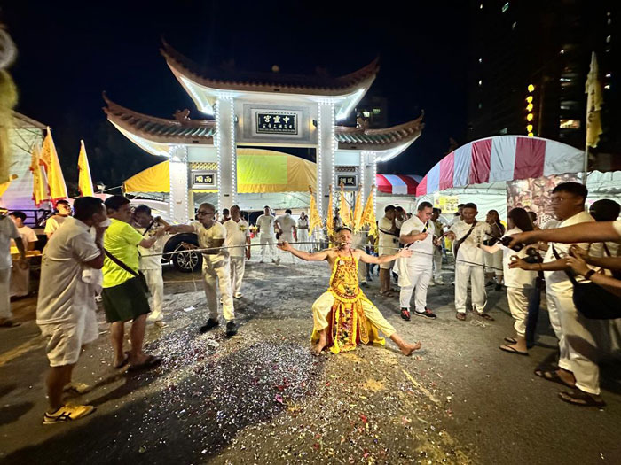 另外,超过30人轮流进行穿针仪式,18岁的林延彬首次参与,其背部穿插6支3尺长的钢针还愿。