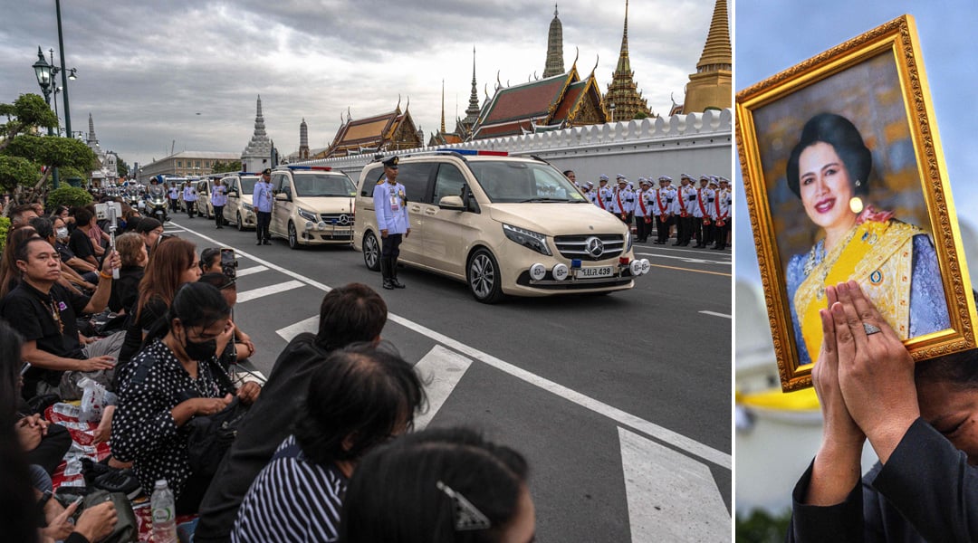 诗丽吉王太后的遗体从朱拉隆功医院运送到大皇宫。民众在车队行径路线上向诗丽吉表达敬意。