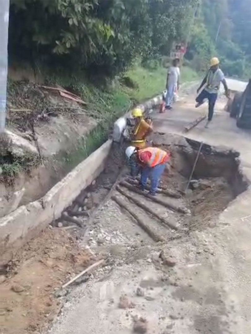 槟州首席部长特别协调官魏祥敬周二(28日)提供的视频显示,承包商工人正在坍塌点展开维修及铺路工程。
