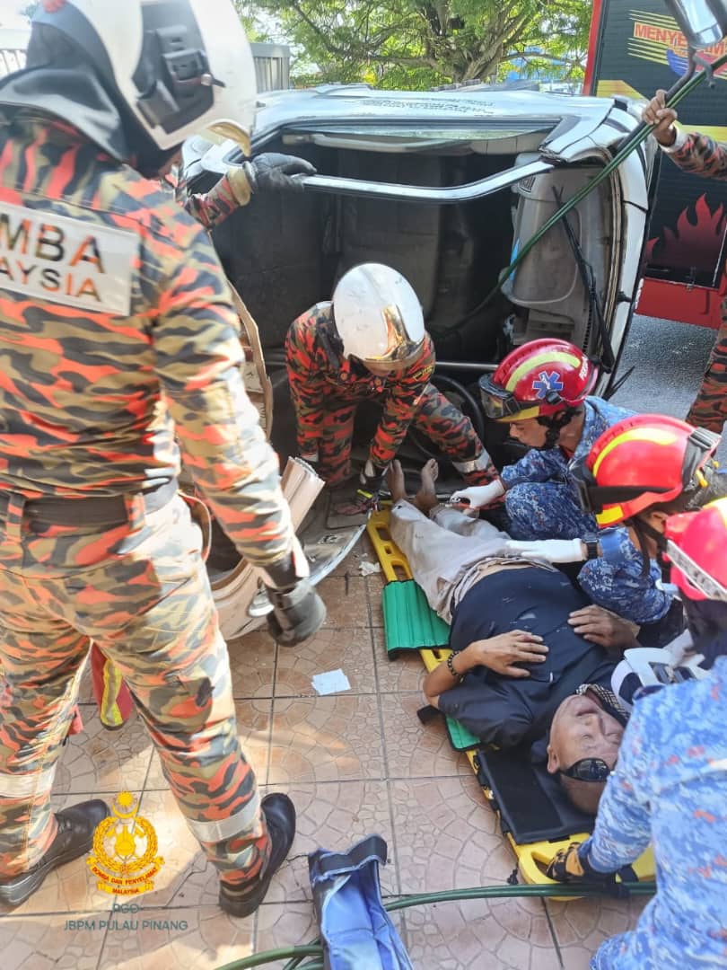 初步调查显示,罗里是在行驶途中失控翻覆,司机受困在驾驶座内。消拯员使用专用器材进行救援,成功将伤者救出,并由民防部队(JPAM)救护车送往邻近医院接受进一步治疗。