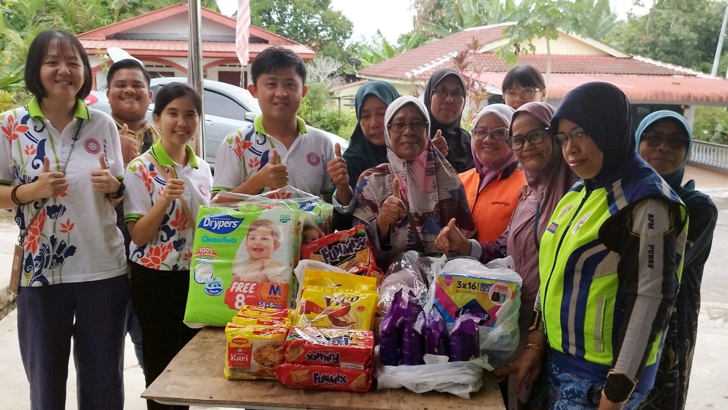 一行人分别前往4所临时疏散中心(班台国小、双溪峇都国小、乌鲁十八丁Mohd Ali Rouse清真寺及Kampung Changkat Larah礼堂)了解灾情,并将所需要的物资包括干粮、饮用水及日常用品等,移交予临时疏散中心负责官员代领,希望这小小心意能减轻灾民所面对的困难。