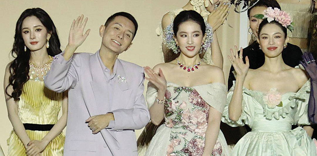 钟楚曦(右起)被指在“VOGUE中国盛典”上霸占C位,导致刘亦菲、《VOGUE》总编、杨幂很拥挤。