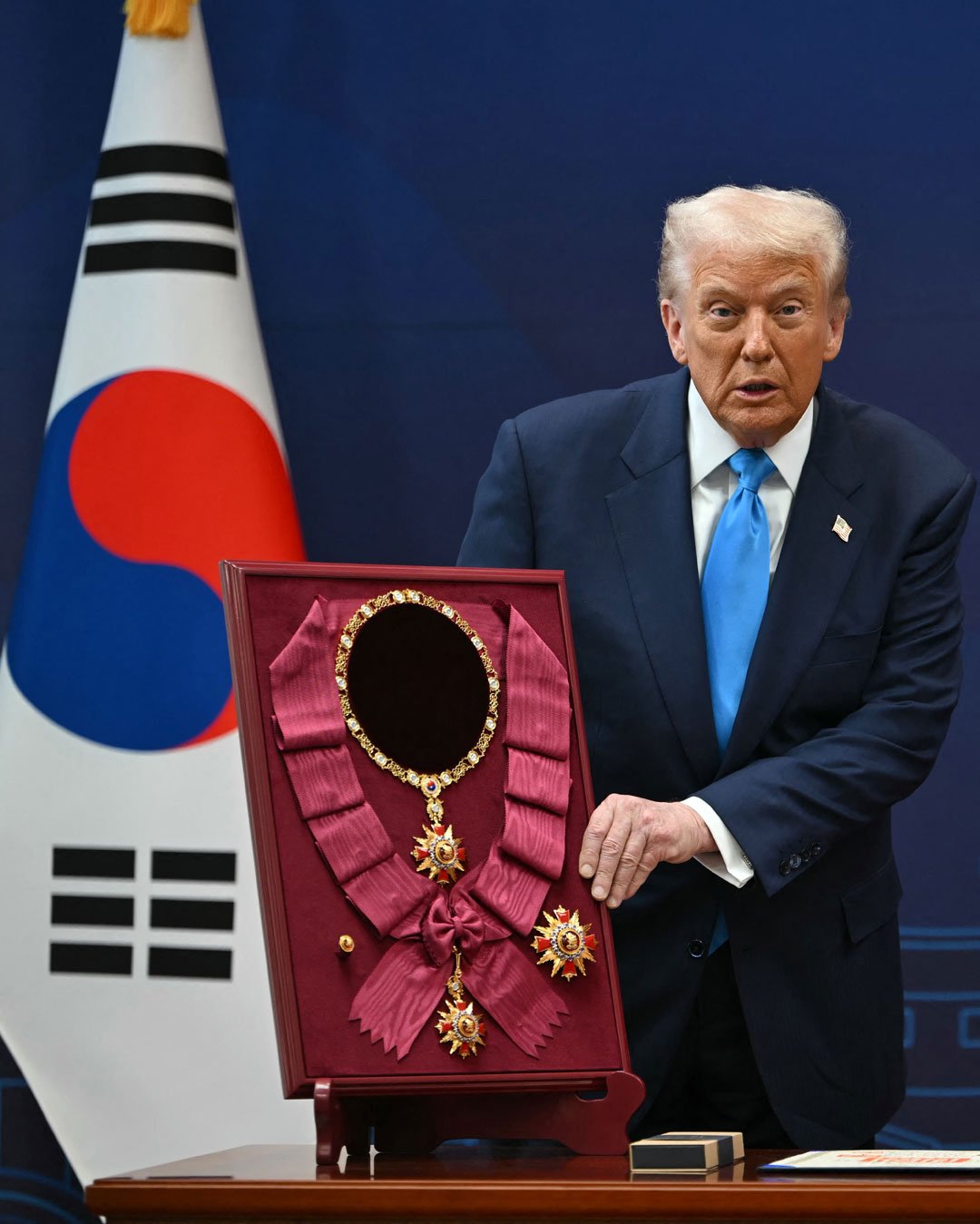 李在明向特朗普授予韩国最高级别勋章—无穷花大勋章,展现韩国政府密切韩美首脑关系、推动两国同盟发展的意愿。