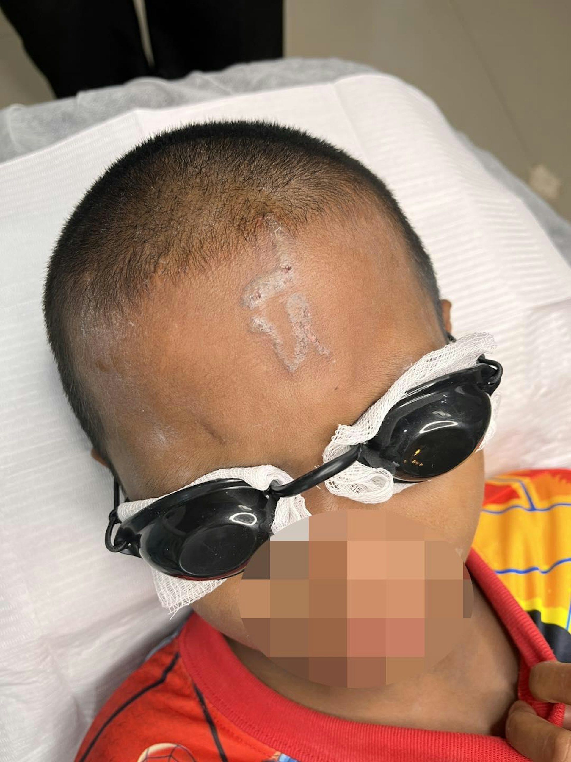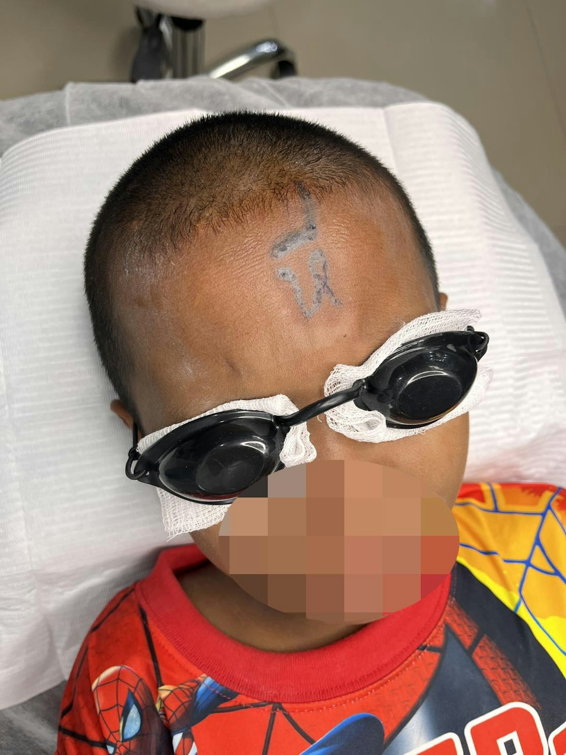 这名纹身师免费为男童进行激光洗纹身疗程。由于施纹者使用的并非专业纹身枪,纹身深度较浅,预计进行约三次疗程即可完全去除。
