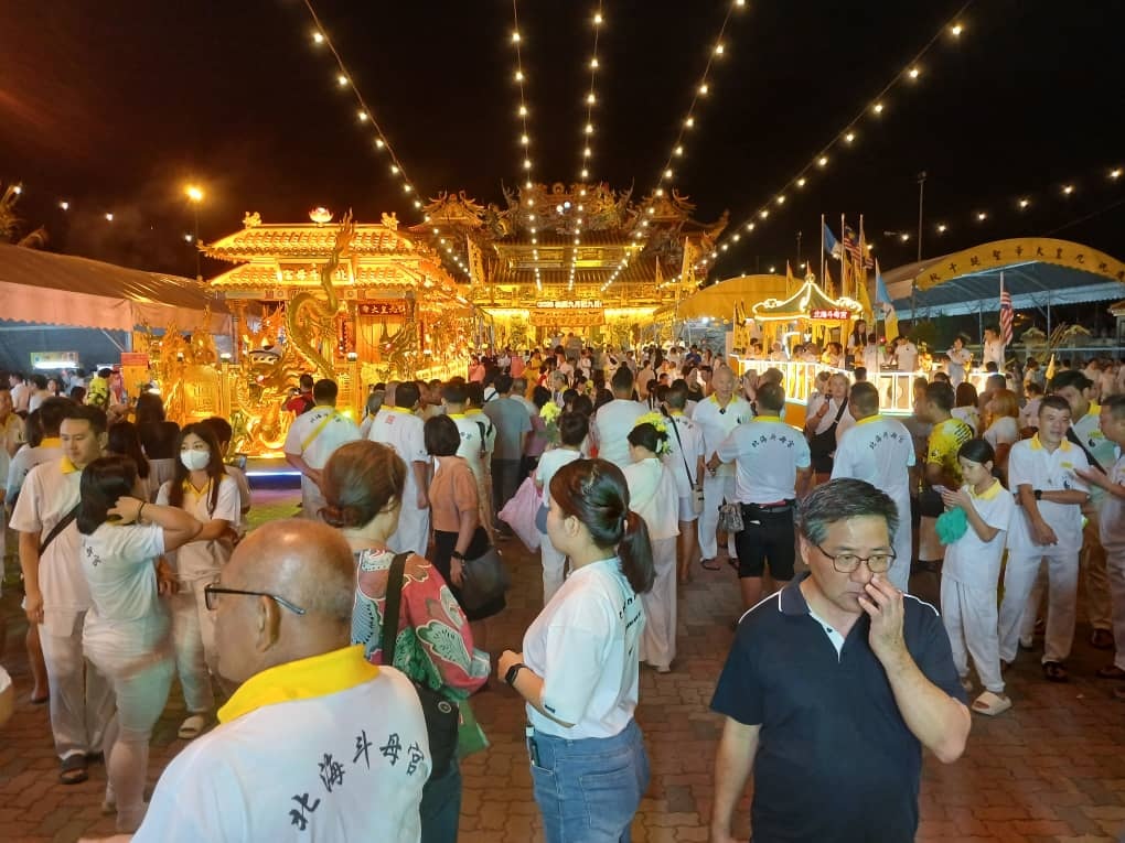 北海斗母宫的恭送队伍,是在晚上9时出发,从位于拉惹乌达的宫庙出发,接着取道淡比格吉路与峇眼惹玛,再转入峇眼亚占清洁海滨。