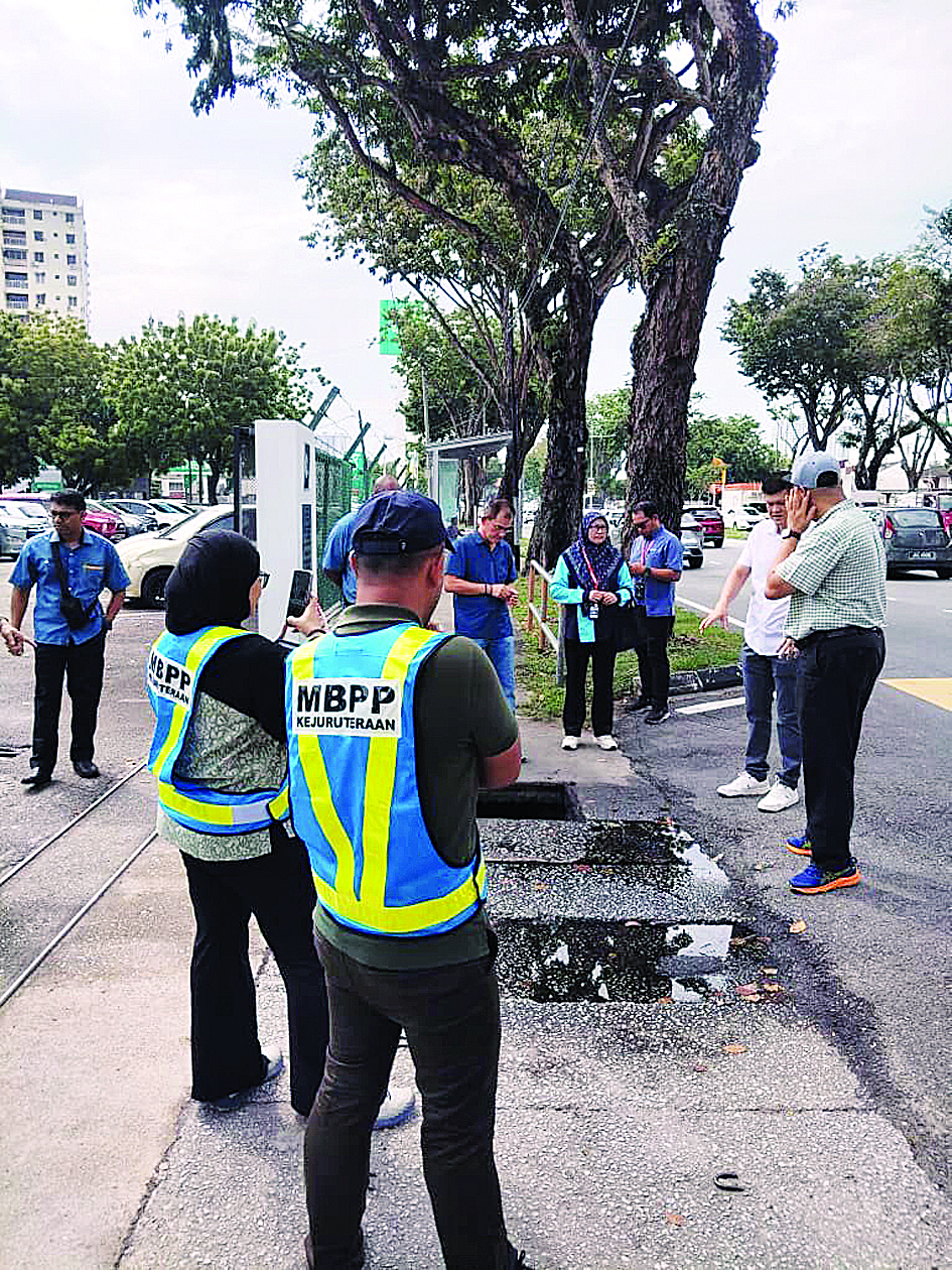 王耶宗与槟岛市政厅人员周一前来检查,发现距离泳池不远处也有渗水问题。