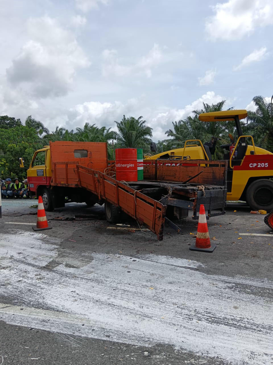 这起交通意外于周三上午10时许发生在太平甘文丁亚逸布爹大路,甘文丁消拯局在接获投报后,立刻派员赶抵现场,发现有一辆轿车撞及一辆停泊在路旁,运载柏油进行铺路工程的3吨罗里后部,造成38岁司机被夹在车内。