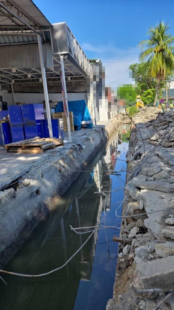 市厅针对槟岛玛苏里10巷后方沟渠因非法混凝土结构阻碍,导致排水受阻,而进行拆除行动。