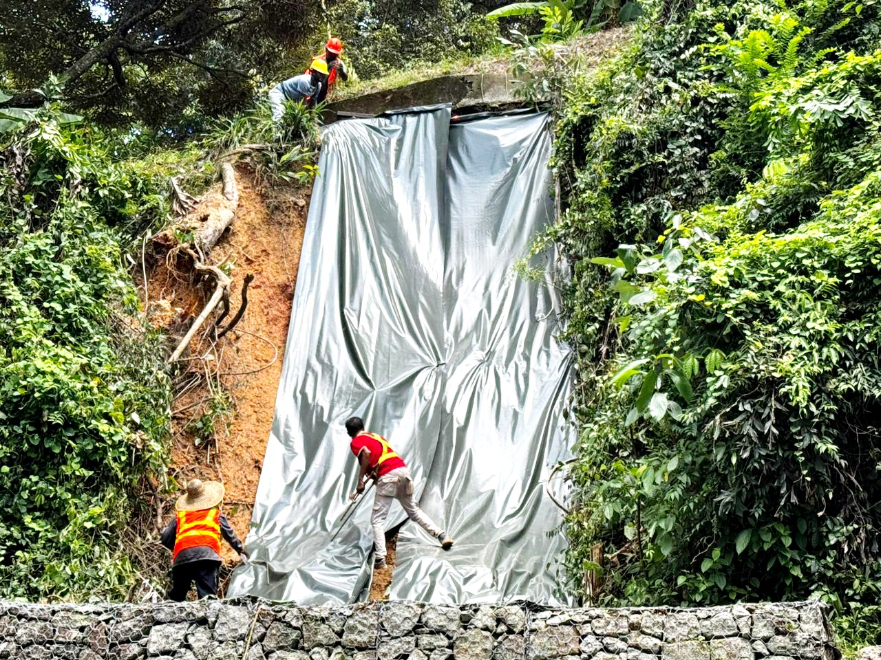 他指出,目前工作人员已将重点转向维护山坡的工作,并在安全条件下进行,包括安装防雨帆布,以防雨水导致土壤进一步滑动。