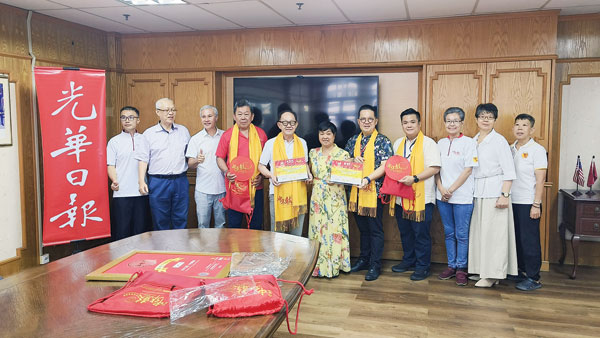 第二届“中华鼓·万仁鼓手齐奏世界和谐鼓盛典”在峇都加湾体育馆圆满成功举办后,主办单位白世音文化艺术研究协会,白世音院长和团队,于日前前往光华日报总社举行颁赠感恩交流仪式,将纪念品赠予合作媒体《光华日报》,并亲手颁发感恩状予总经理拿督李兴前与署理总经理林星发,以感恩光华日报,在推广中华鼓文化与传播教育理念上的支持。