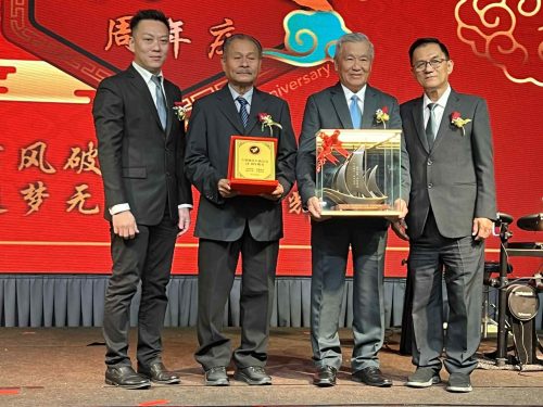 接着,许师梅在林木和陪同下,颁赠纪念品给予黄锋及庄文财,之后全体理事与嘉宾进行切周年庆蛋糕仪式。