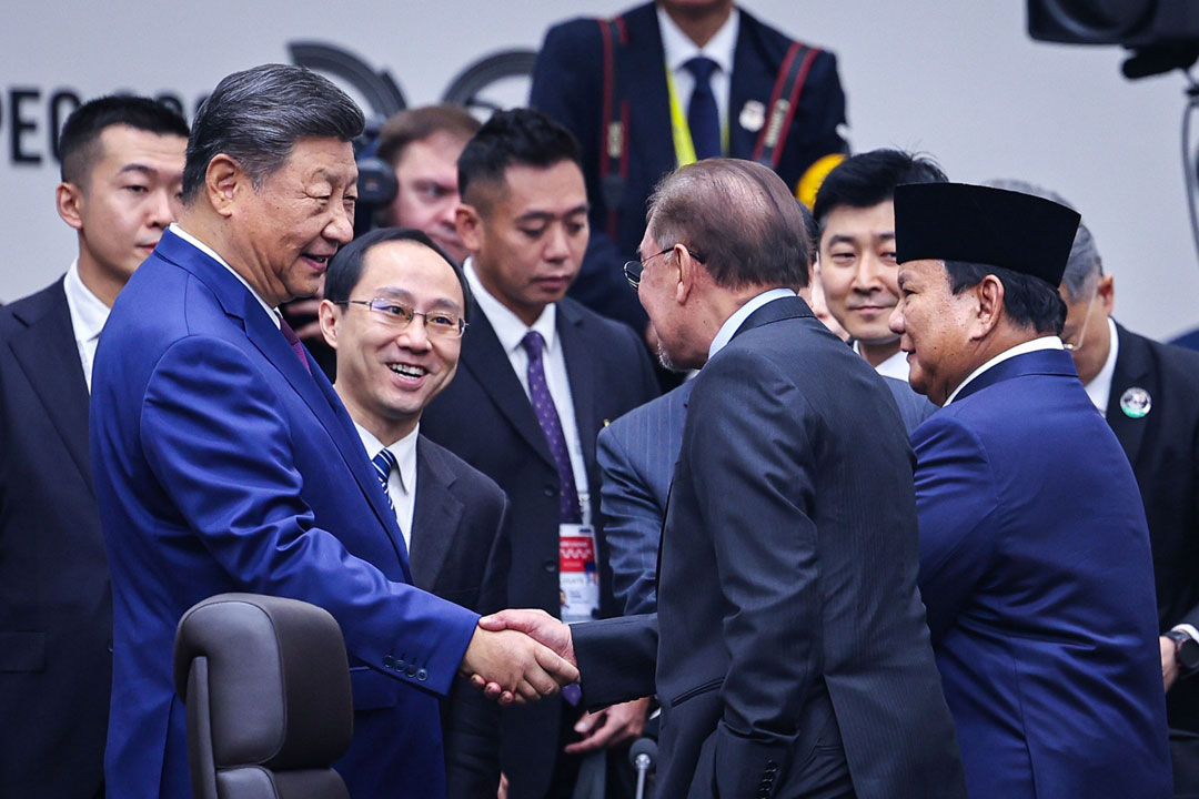 亚太经济合作组织(APEC)经济领导人会议,首相安华(右)与习近平(左)握手互动交流。