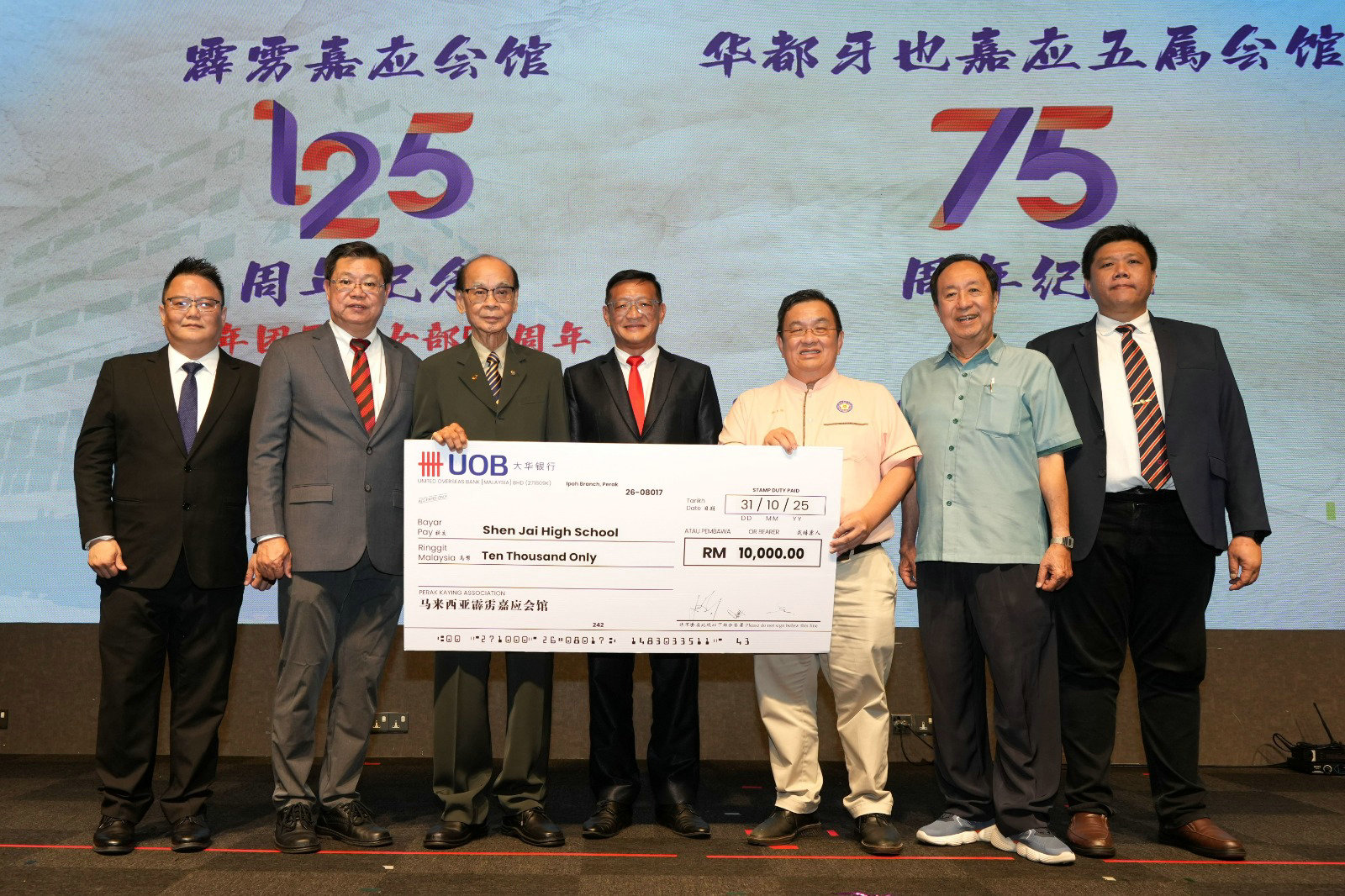 众嘉宾一同欢庆霹雳嘉应会馆125周年、青年团及妇女组55周年、华都牙也嘉应五属会馆75周年。