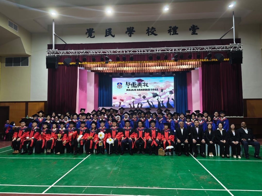 校长王光前引用香港演员周星驰的经典台词,“做人如果没有梦想,跟咸鱼有什么分别”,勉励毕业生勇敢追梦,自信迎战挑战,永无止境地学习,同时勿忘栽培自己的父母和母校老师,并义不容辞协助母校发展。
