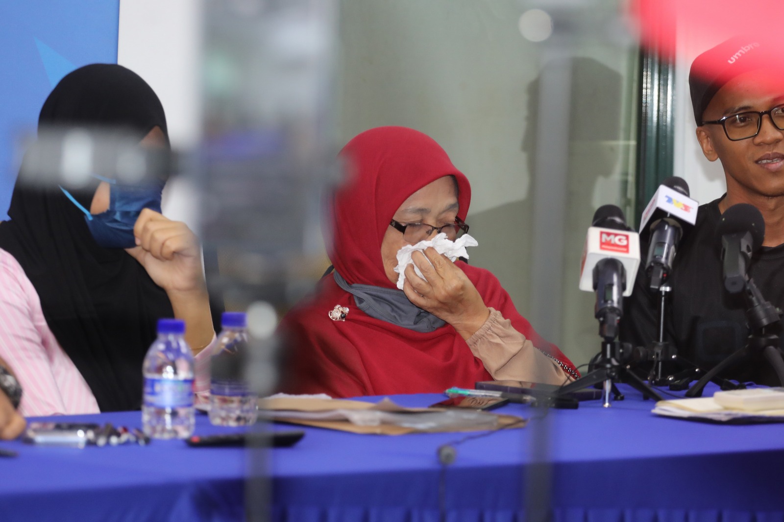 乌米(左2)哭诉,她一家遭阿窿暴力逼债,报警后警方却敷衍搪塞,怒斥警方“难道要人死了才行动?”。