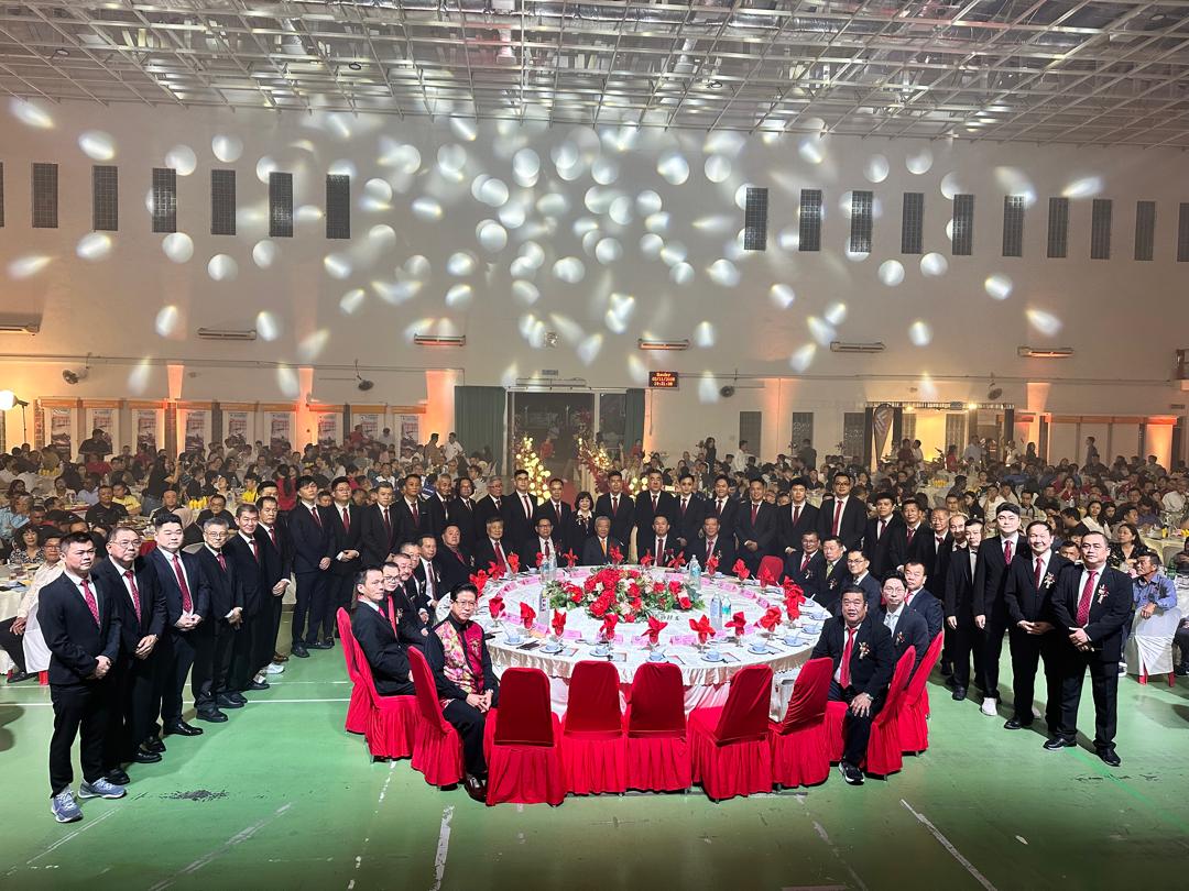 槟州摩托车商公会庆祝创会37周年纪念联欢宴会,主桌嘉宾与全场出席者大合照。