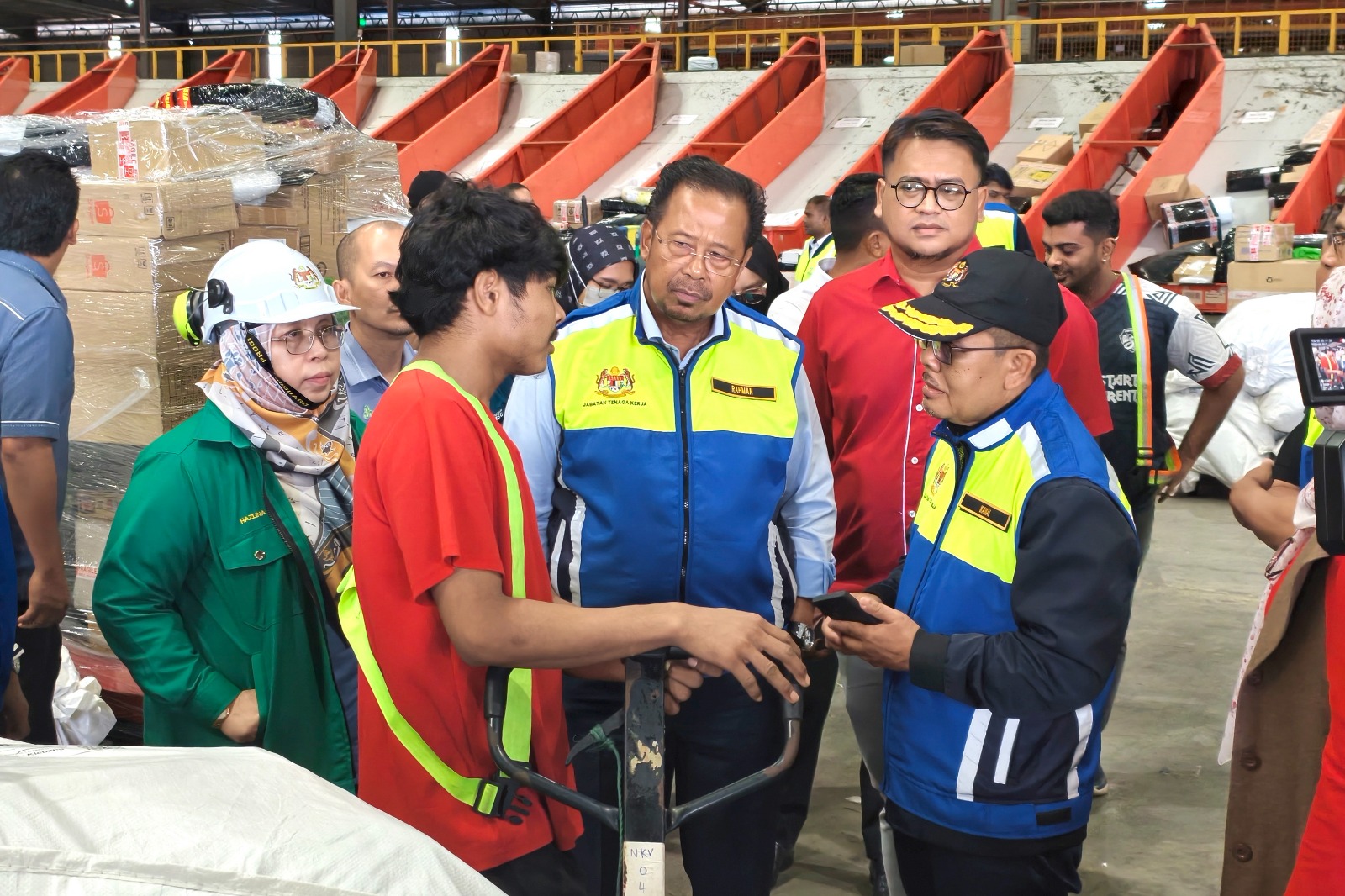 联合执法队伍是于今早(4日)10时许,人资部副部长拿督斯里阿都拉曼带领下,突击位于的快递公司仓库,除了仔细检查工作环境,阿都拉曼也亲自询问多名员工,了解他们是否被雇主苛待。