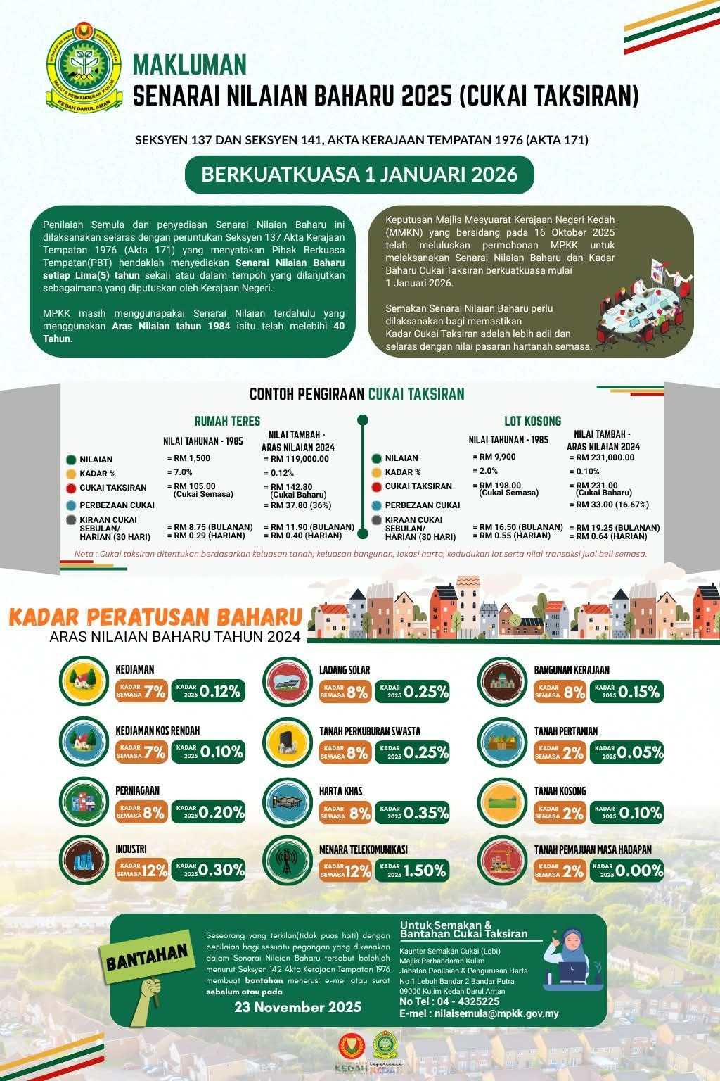 居林市议会周三在脸书专页发文指出,市会依据《1976年地方政府法令》(Akta Kerajaan Tempatan 1976, Akta 171)第137及第141条文的规定,展开门牌税估价表重估工作,并于昨晚举行相关说明会。
