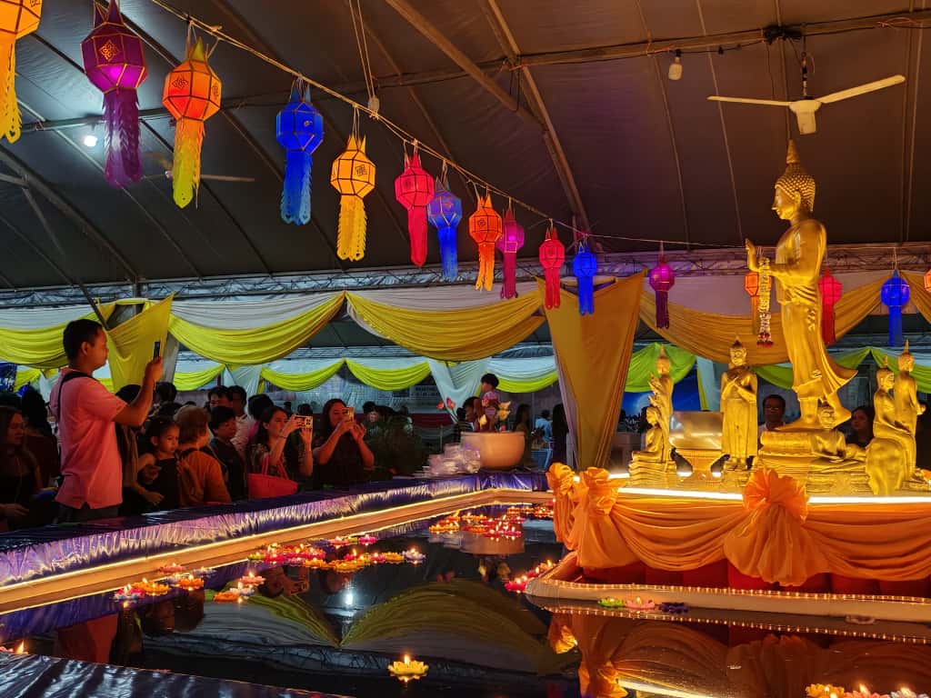 现场节目多姿多彩,包括水灯设计比赛、放水灯祈福、舞台演唱会、文化表演、泰式美食摊格、以及传统手工艺展等,现场人头攒动,场面热闹。