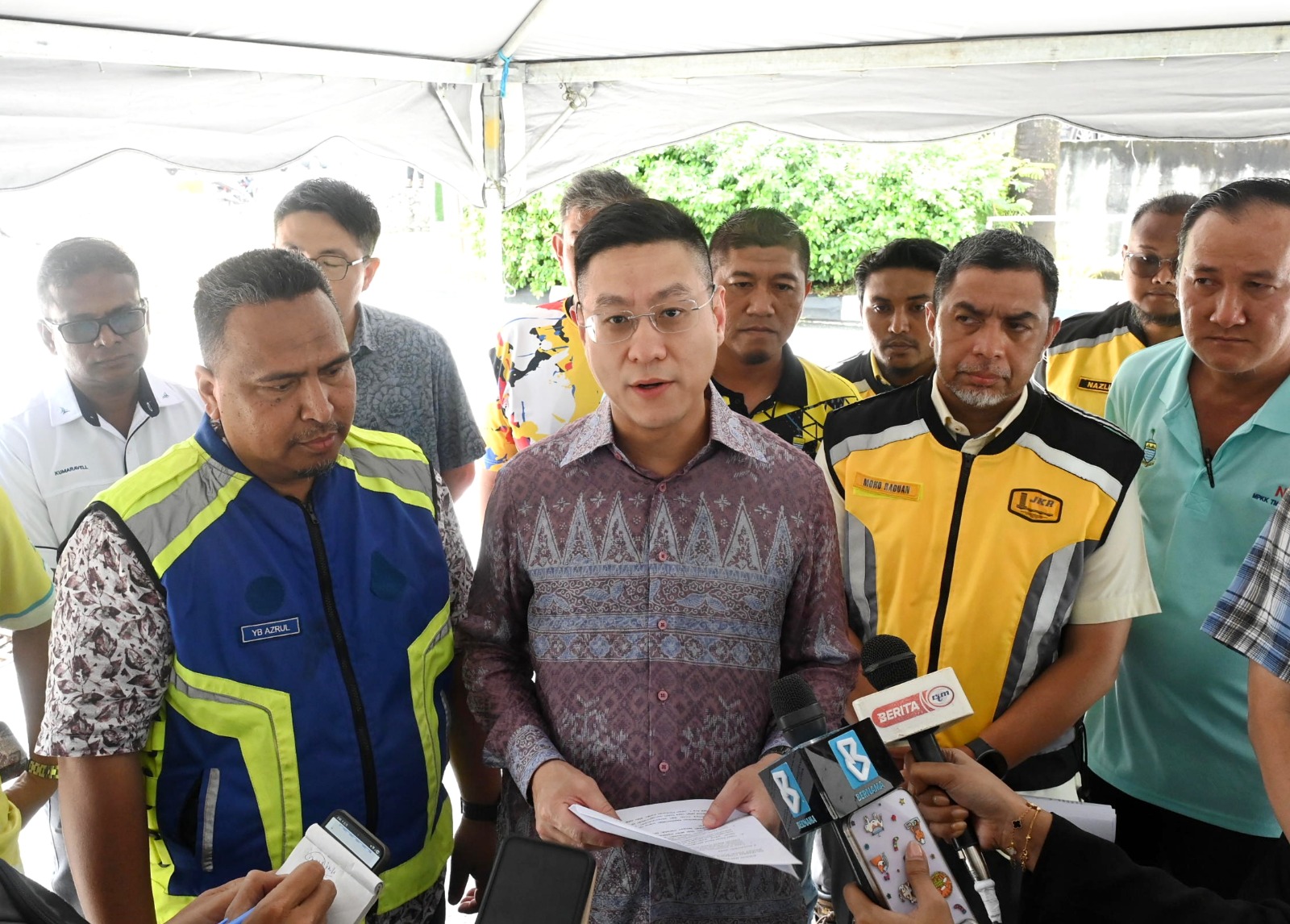 他周四在峇六拜州议员拿督阿兹鲁,槟州公共工程局,槟岛市政厅,槟州供水机构和英达丽水等机构官员陪同下,前往巡视。