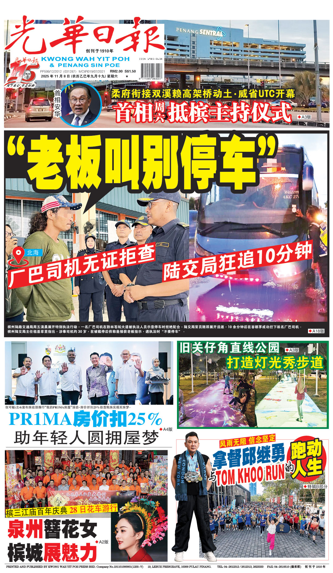 首相周六再莅临槟城 主持大道动土礼 为威省UTC开幕