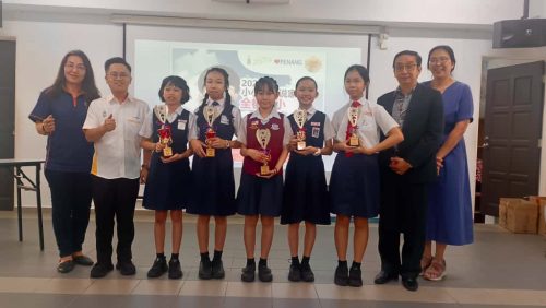 仪式上,黄明毅和槟州教育局华文科委李美珊督学,分别颁奖予5个县的优胜者。