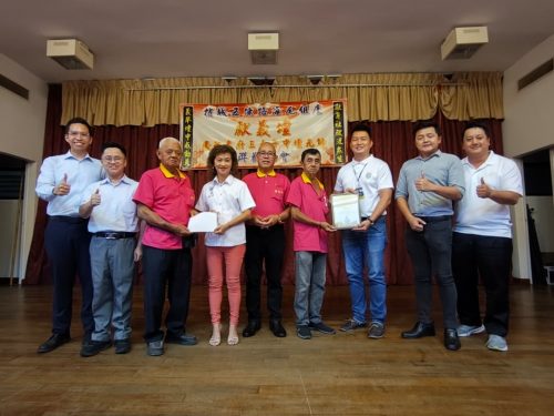 该坛酬神不忘教育公益,为威北光育学校筹募迁校及建校基金筹得2000令吉,由财政郭飞鸿将款项移交槟州中元联合会代表郭燕美,同时光育建委许蔚昌则颁赠牌匾予总务庄金荣,由郭廷来、总务庄金荣、王宇航、槟岛市议员洪明泉、丹绒区国会议员林慧英的代表傅政翰、五条路社委会主席蔡顺隆陪同见证。