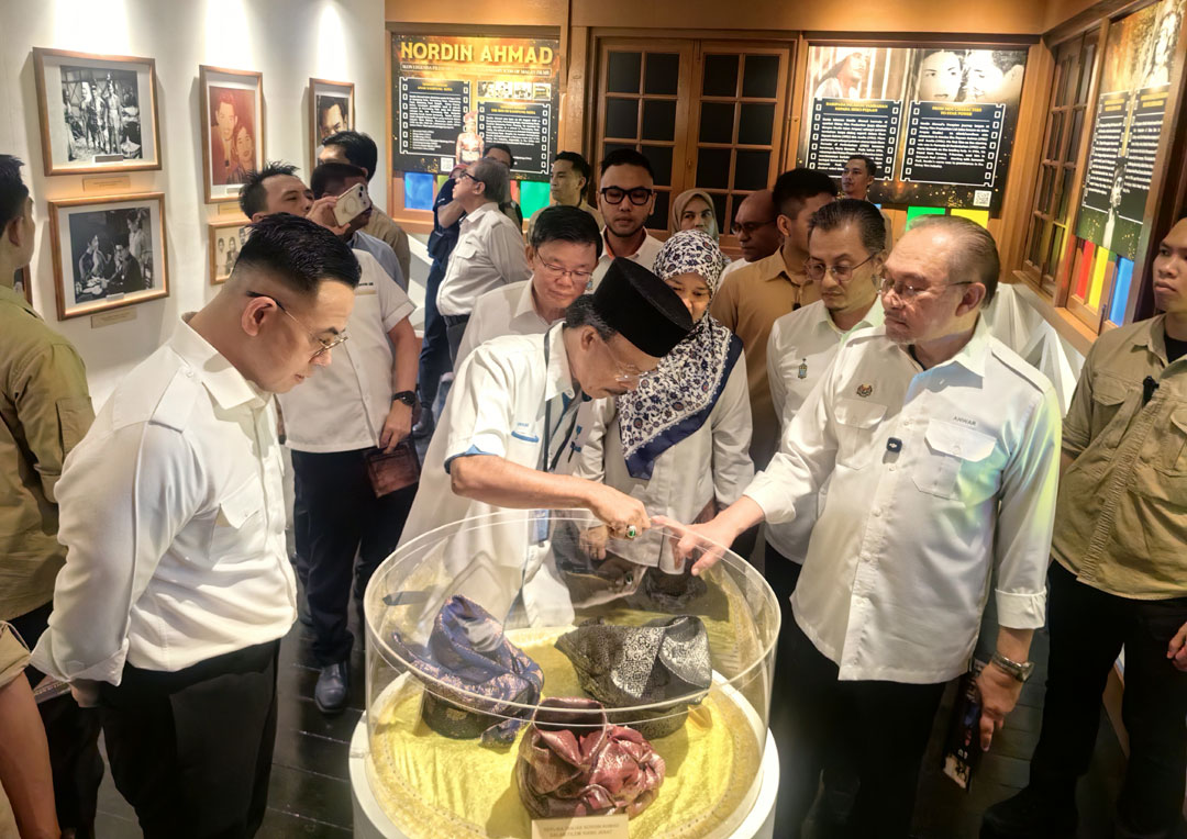 首相拿督斯里安华周六早上旋风式到访柏玛当巴锡国小,参观已故影星诺丁阿末纪念馆,一时兴起在馆内哼唱一段后者电影中的歌曲。