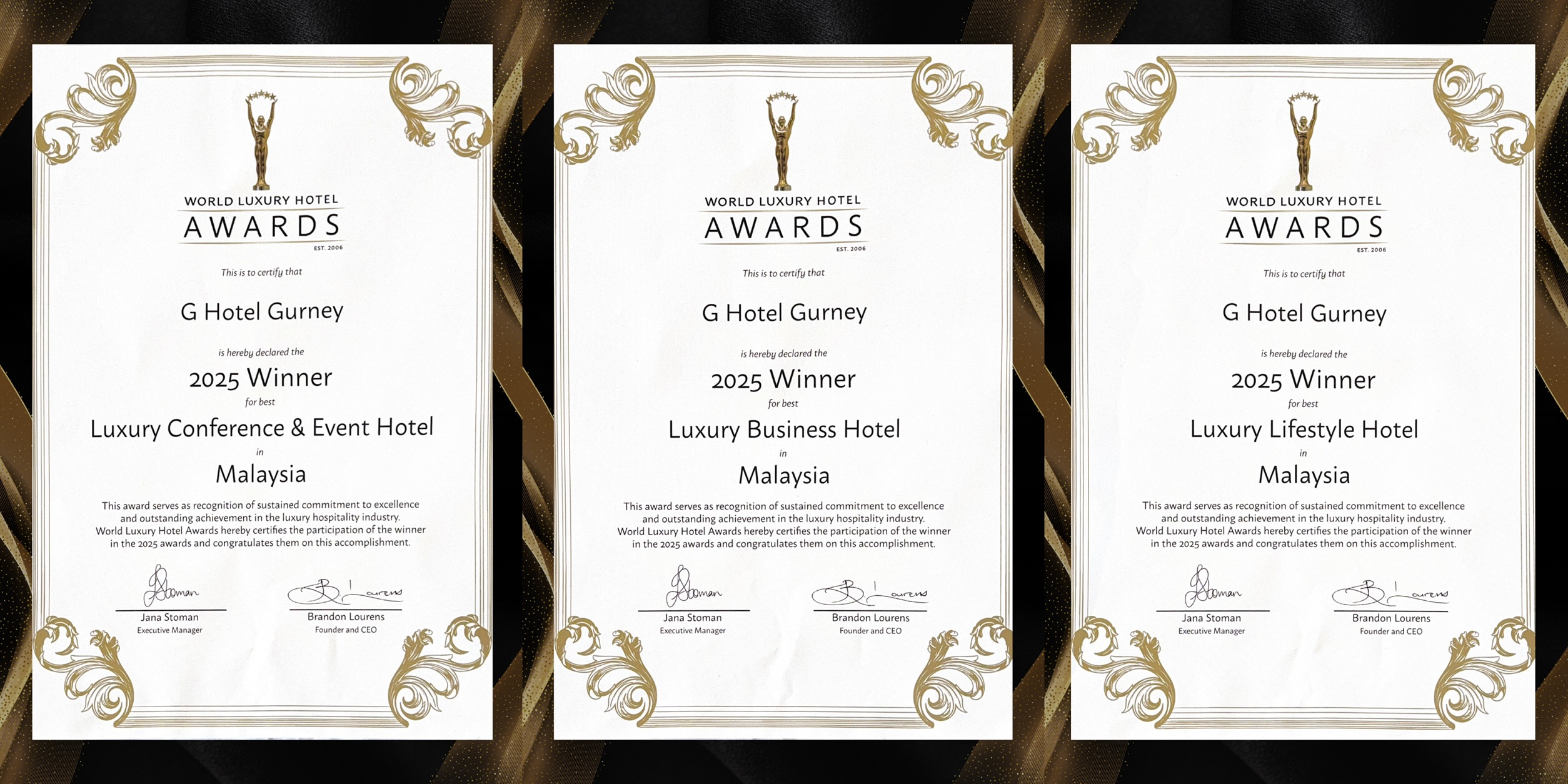 G Hotel Gurney 此次的“三冠王”成就,再度巩固其作为马来西亚领先都会酒店的地位。酒店以现代化的设计美学、细致入微的服务,以及坐拥槟城黄金地段的地理优势,长期以来深受商务旅客、会议活动策划者与休闲游客青睐。
