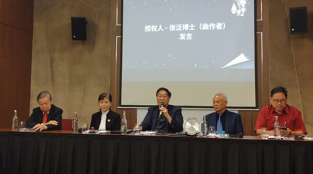 会上,张泛回忆《传灯》诞生过程,是为配合新加坡《南洋商报》举办的“第一届文创金狮奖”颁奖礼,在杜南发邀请下,自己在半小时里完成谱曲。