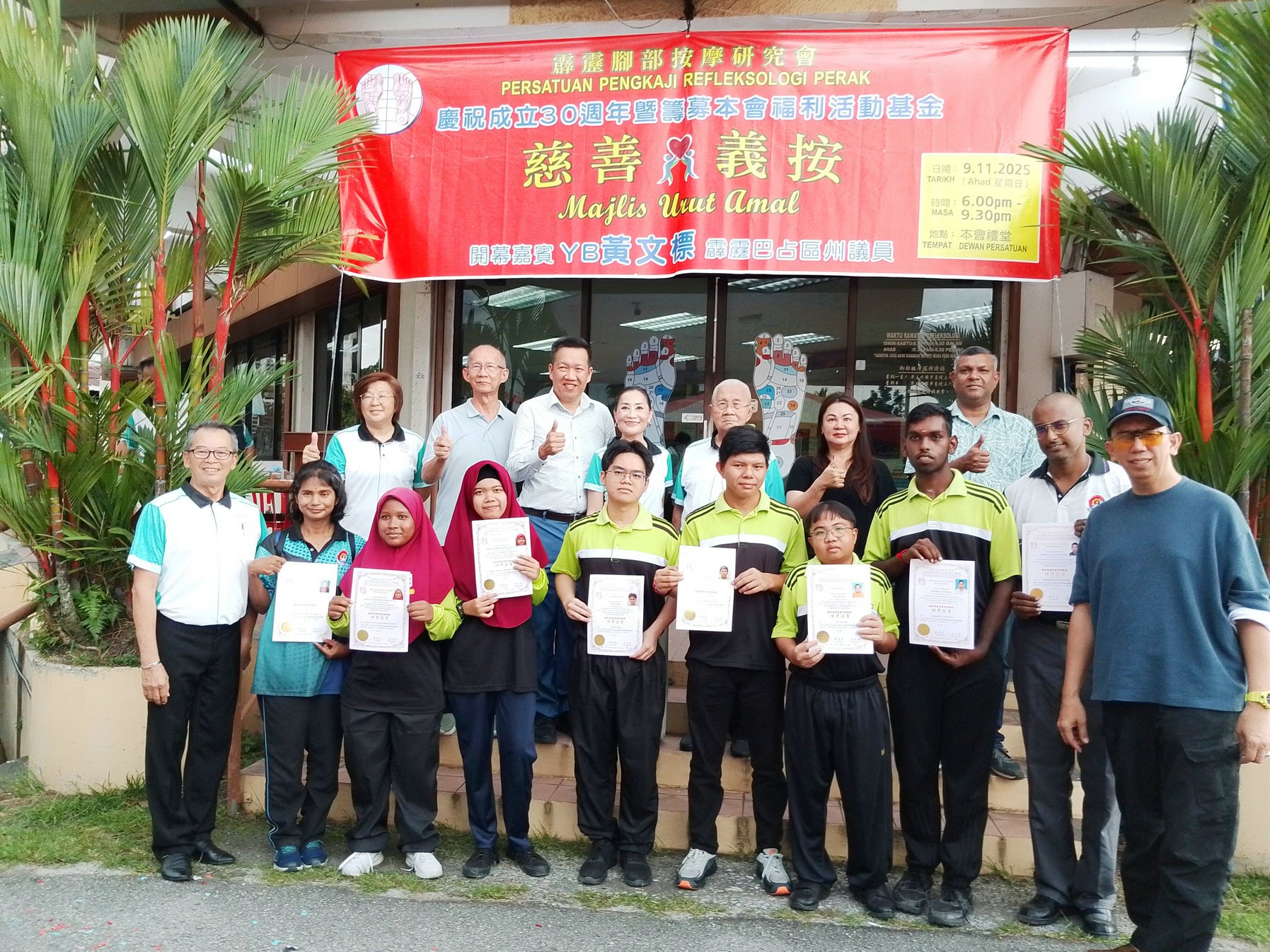 霹雳巴占州议员黄文标说,霹雳脚底按摩研究会创会30周年来,多年来秉承公益精神举办慈善义按,不但培养了不少脚底按摩师,也直接让社会大众有个健康的生活素质。