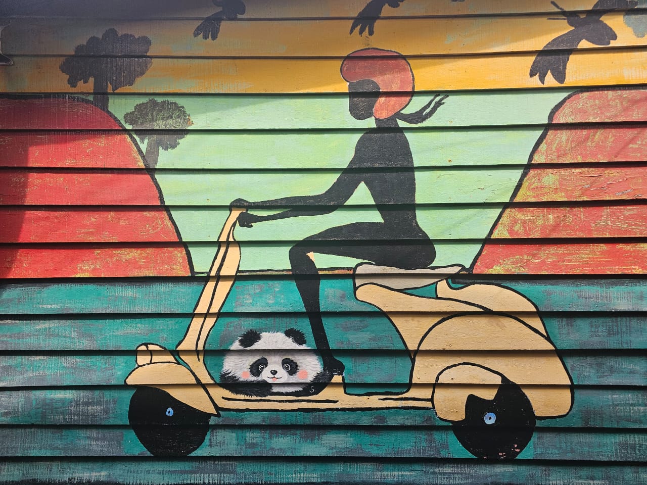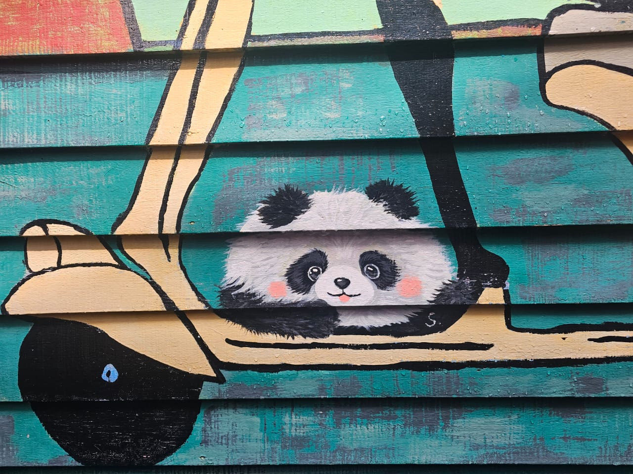 她称,我觉得这面墙很有特色,所以就画上了一只小熊猫。