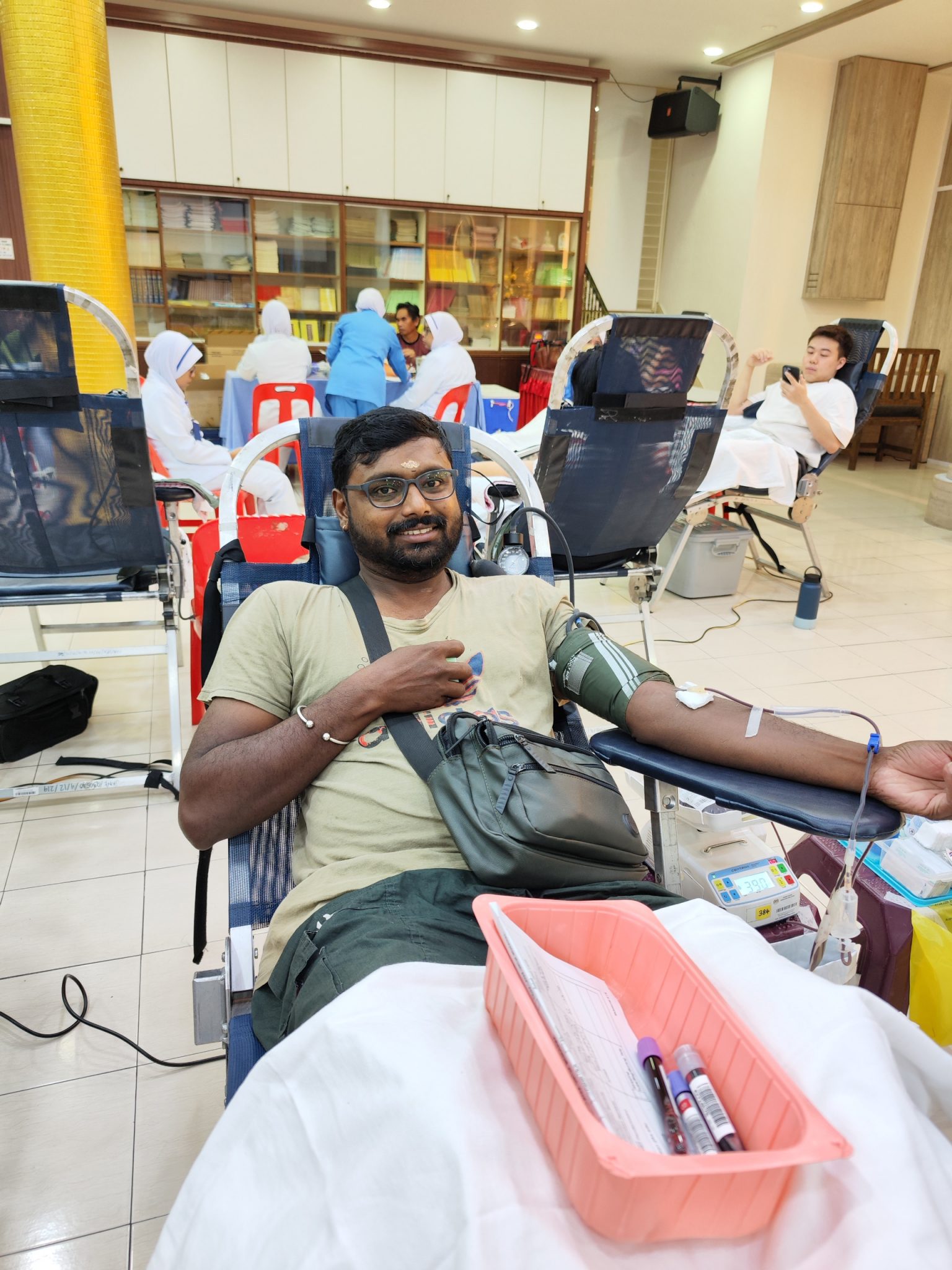 这场捐血运动也获得友族的响应,39岁的印裔同胞姆古仁说,自己从18岁起开始捐血,至今第6次捐血,虽然并非每次都能固定出席,但只要时间允许,他都会尽力参与。