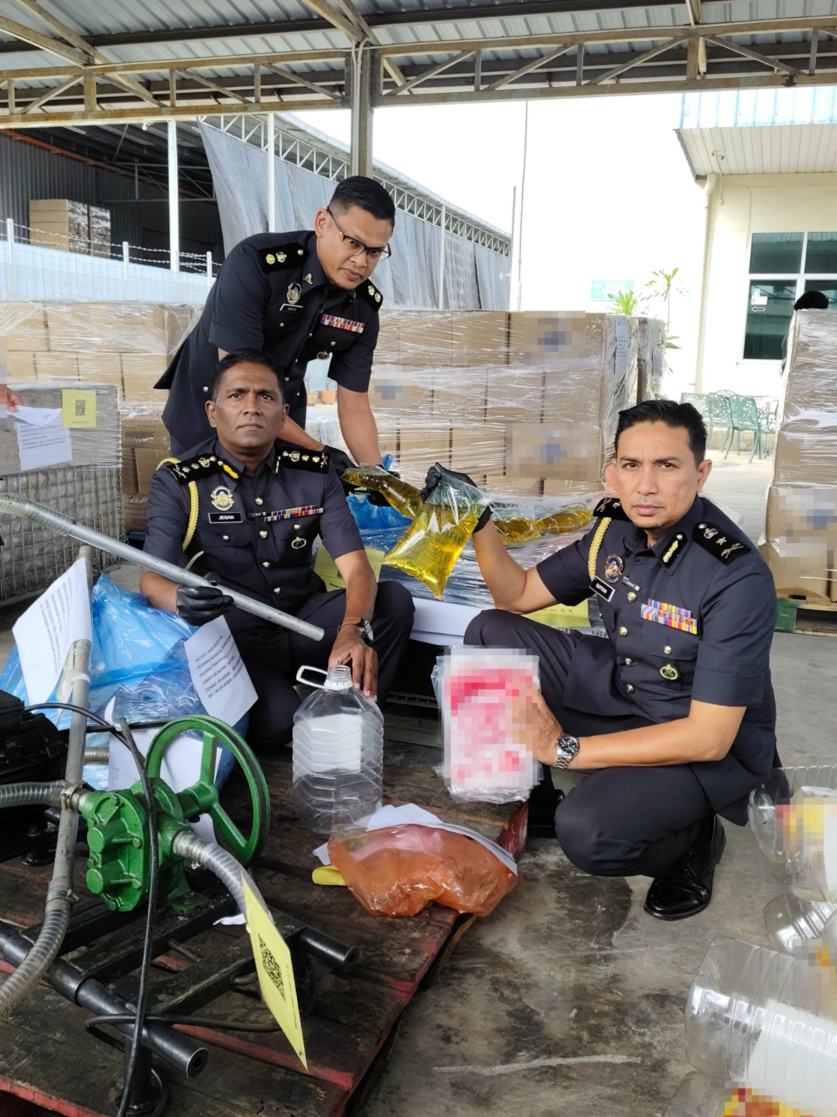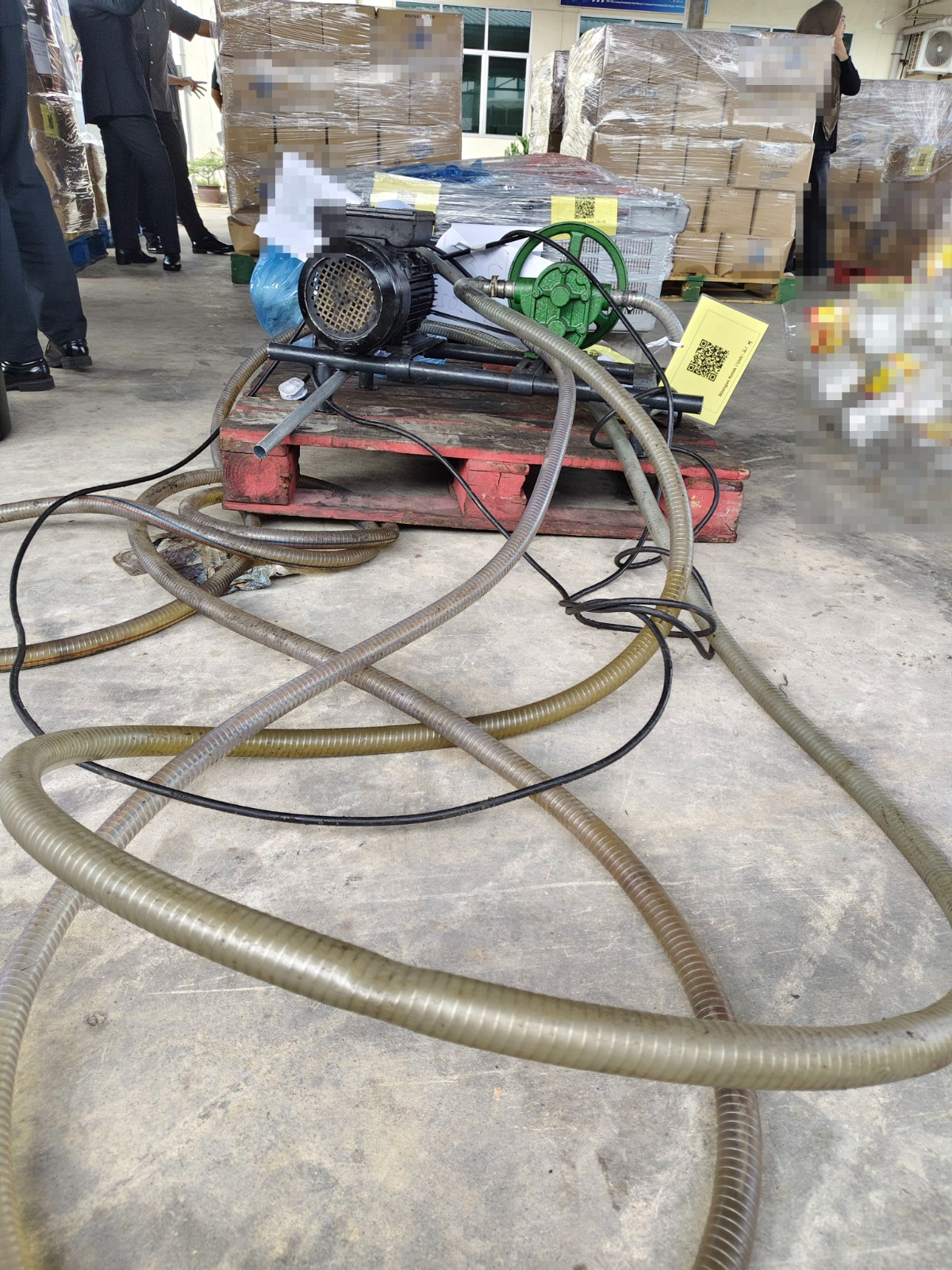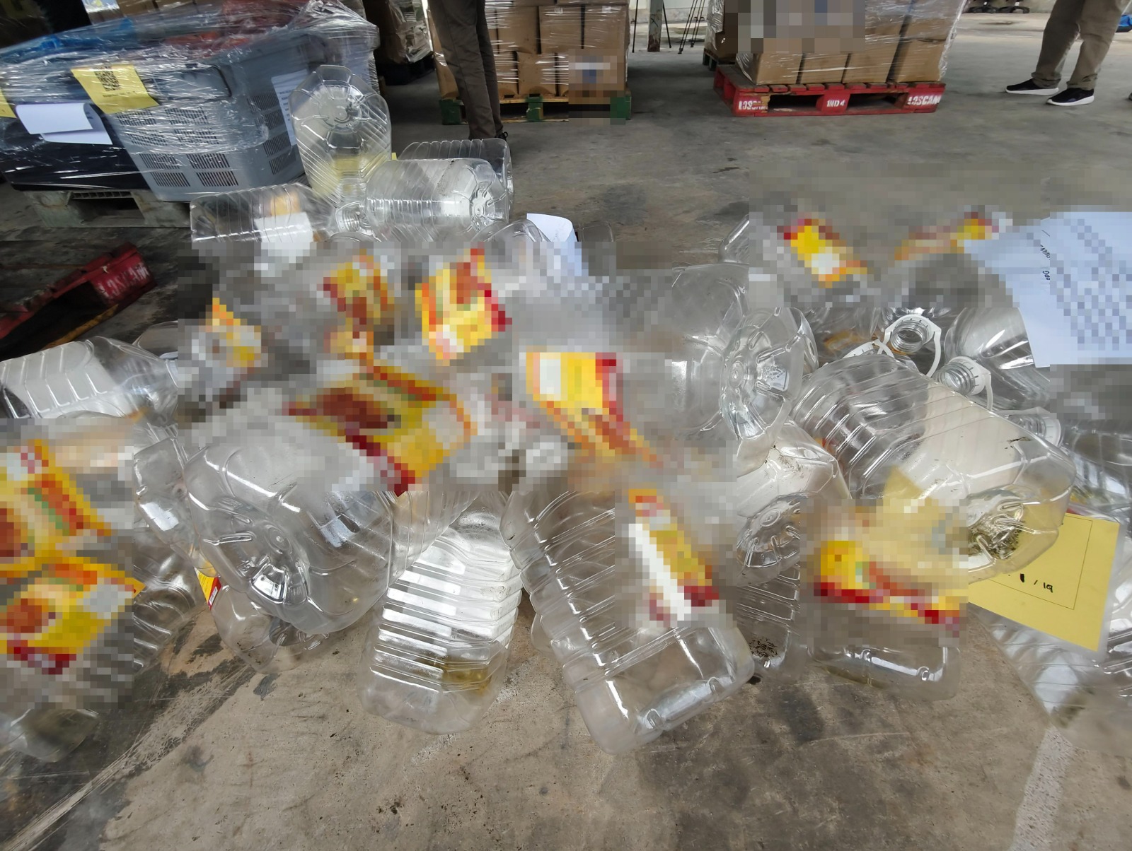 当局在此次行动中,共起获约5720公斤的1公斤装津贴食油,其他充公物品包括25个5公斤容量的空瓶、已被剪开的津贴食用油包装袋、两个装有津贴食用油的蓝色大桶及用于装瓶的抽油泵和9把剪刀。