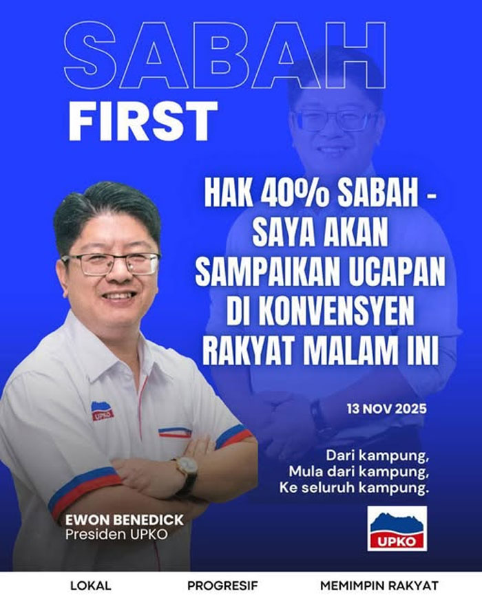 沙巴民统党(UPKO)主席拿督依温班尼迪表示,本届的沙巴选举应成为捍卫40%净税收权益的的公投。