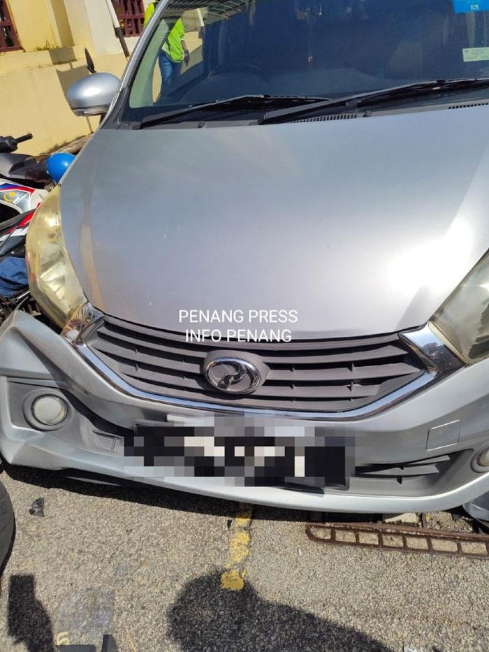 轿车冲撞摩托车停放处,现场一度混乱。(取自Penang Press)