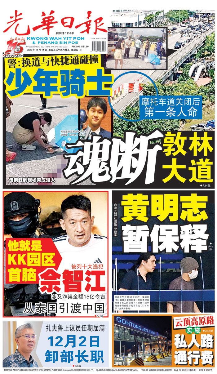 【少年骑士魂断敦林大道】涉事车辆为槟快捷通巴士 司机已向警方投报