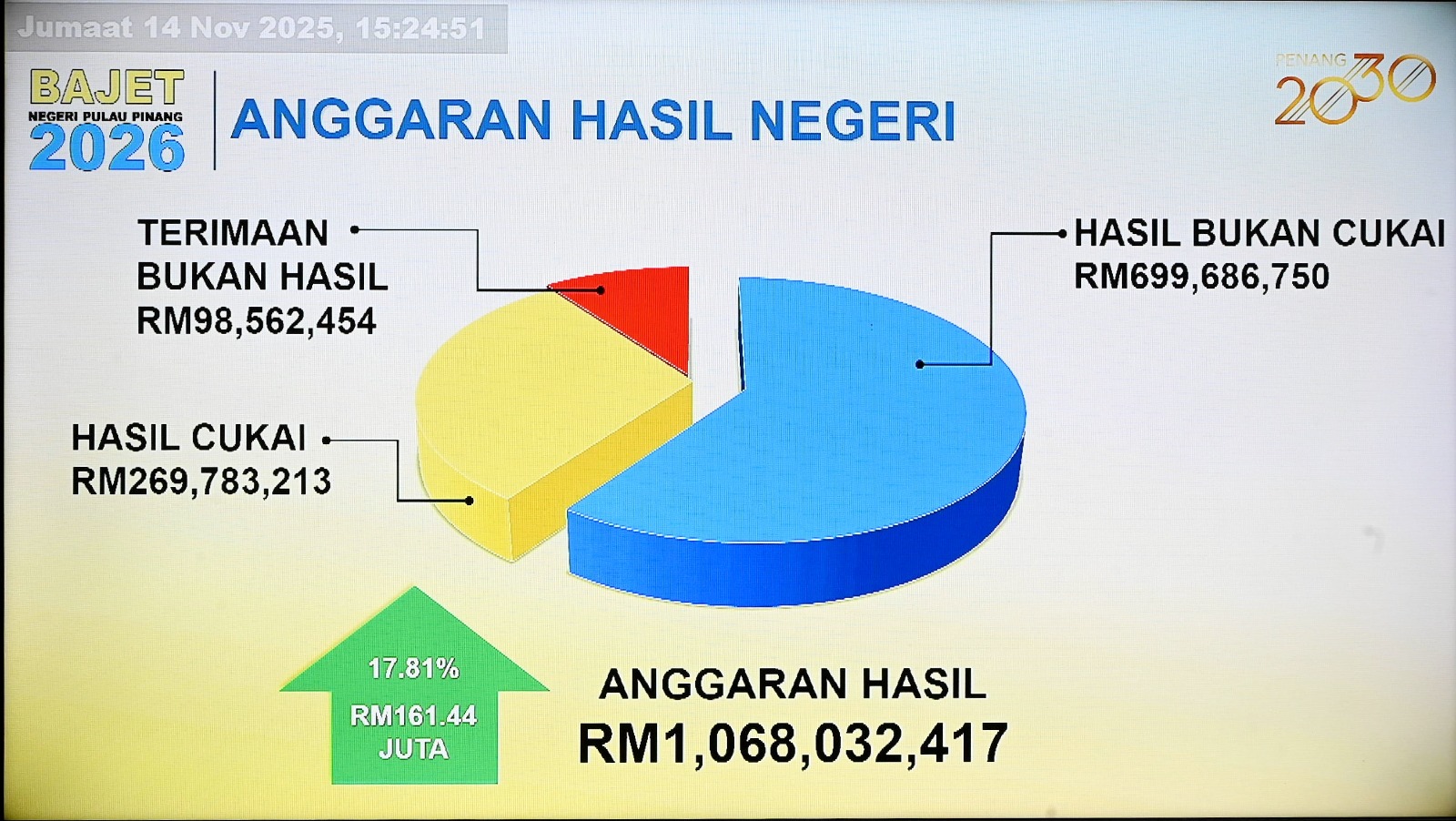 他指出,州政府预计2026年税收收入也将有所提升,尤其是直接税务(Cukai Langsung)部分,原因是新的土地税率将于2026年开始实施。